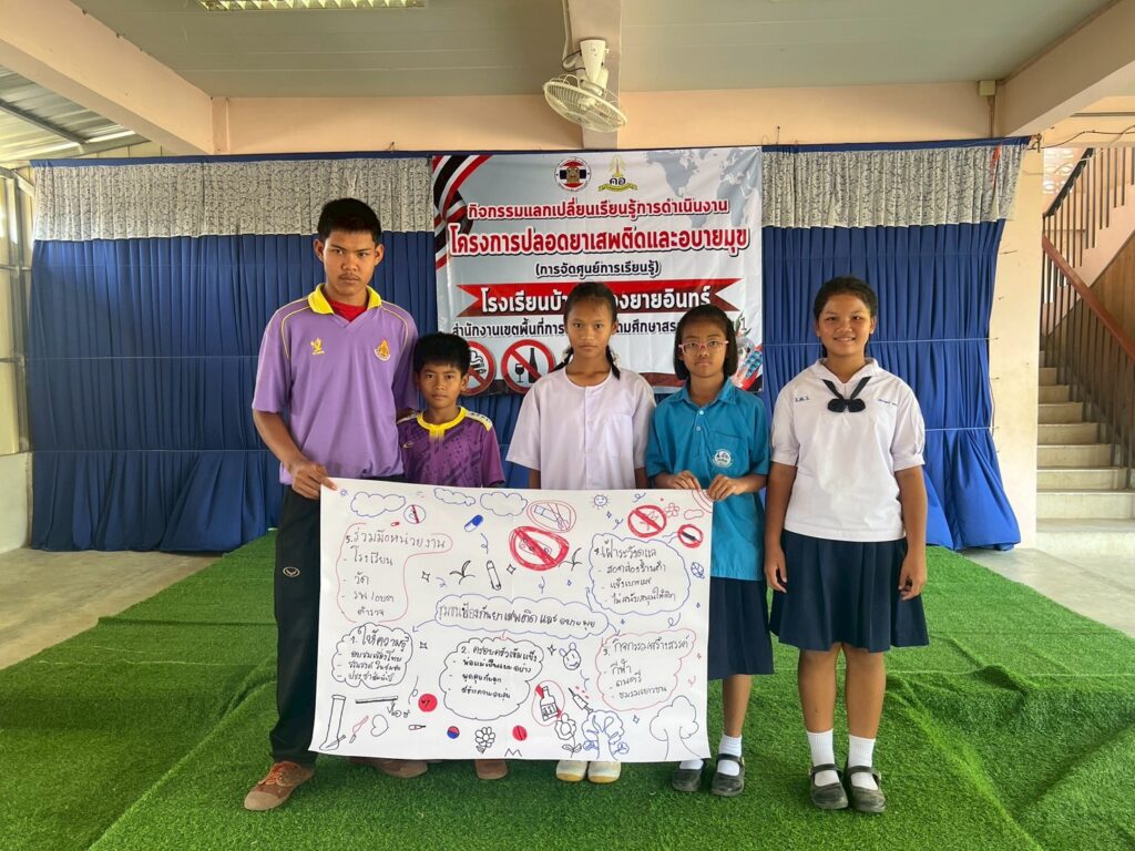 ยาเสพติด เพื่อเป็นแหล่งเรียนรู้ของนักเรียนและชุมชน ในการป้องกันภัยยาเสพติดตามโครงการสถานศึกษาสีขาวปลอดยาเสพติดและอบายมุข โดยมีครูผู้รับผิดชอบโครงการและนักเรียนเครือข่าย เข้าร่วมศึกษาดูงานและร่วมกิจกรรมแลกเปลี่ยนเรียนรู้ของศูนย์ ได้แก่ โรงเรียนบ้านคลองเจริญสุข โรงเรียนบ้านวังทอง โรงเรียนบ้านวังดารา โรงเรียนซับเกษมวังชุมทอง ณ โรงเรียนบ้านคลองยายอินทร์
